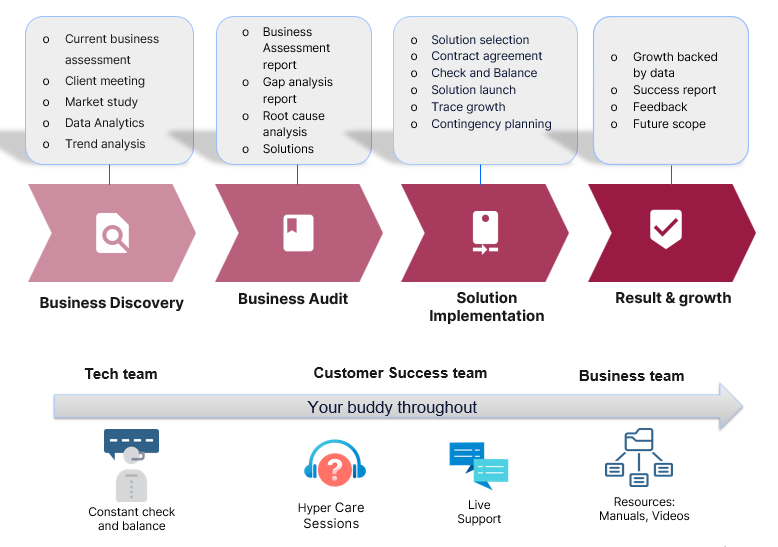 Solution ImplementationDuring the Solution Implementation phase, we bring your strategies to life through targeted marketing and business development initiatives. Our team works closely with you to execute tailored solutions, ensuring that every step aligns with your vision. We focus on delivering measurable outcomes, enhancing your brand's impact in the market.